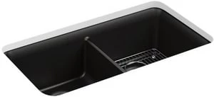 Promo 😀 KOHLER Cairn® 33-1/2 x 18-5/16 in. No Hole Composite Double Bowl Undermount Kitchen Sink in Matte Black 🎁