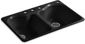 Brand new 😍 KOHLER Hartland® 33 x 22 in. 4 Hole Cast Iron Double Bowl Drop-in Kitchen Sink in Black Black™ ⭐