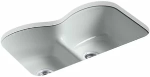 Promo 🌟 KOHLER Langlade® 33 x 22 in. 5 Hole Cast Iron Double Bowl Undermount Kitchen Sink in Ice™ Grey 😀