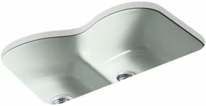 Buy 🎁 KOHLER Langlade® 33 x 22 in. 5 Hole Cast Iron Double Bowl Undermount Kitchen Sink in Sea Salt™ 🧨