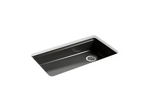 Best Sale 🎉 KOHLER Riverby® 33 x 22 in. 5 Hole Cast Iron Single Bowl Undermount Kitchen Sink in Black Black™ 😀