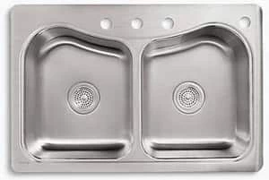 Best Pirce 👏 KOHLER Staccato™ 33 x 22 in. 4-Hole Stainless Steel Double Bowl Drop-in Kitchen Sink with Sound Dampening ✔️